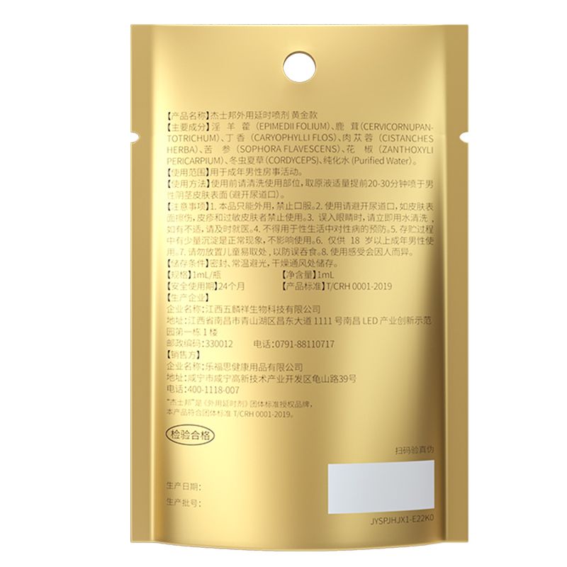 杰士邦外用延时喷剂 黄金款 1mL